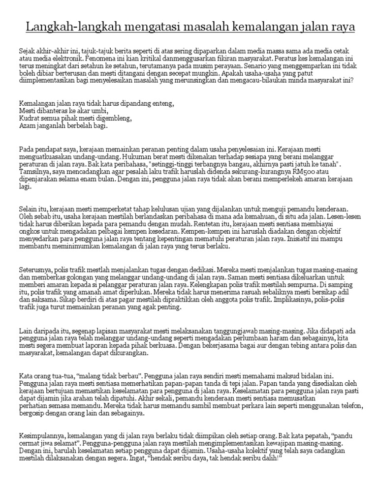 Cikgu Sabar Mohd Karangan Tingkatan 3 Langkah Langkah Mengelakkan Kemalangan Jalan Raya