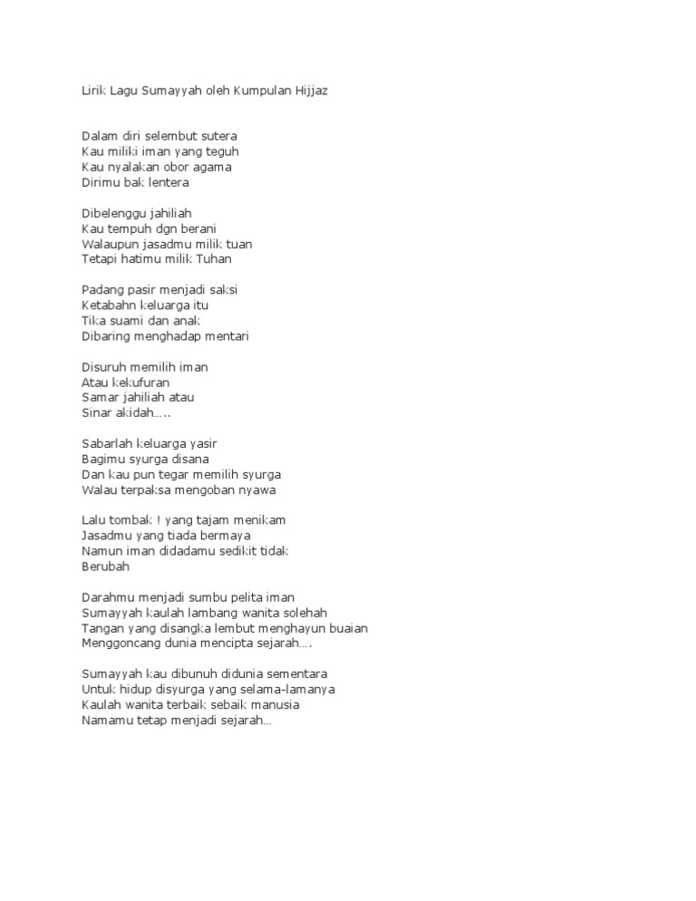 Lirik Lagu Sumayyah Oleh Kumpulan Hijjaz Pdf